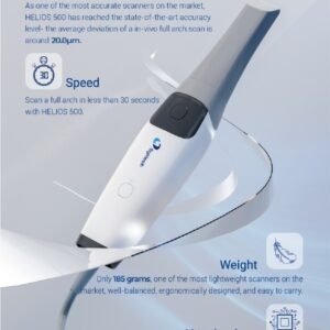 Orikam Eighteeth Medical Helios 500-3D Intraoral Scanner is one of the most accurate and fastest scanners available on the market. Compact and easy to operate, it delivers a high-definition field of view measuring 16mm x 14mm