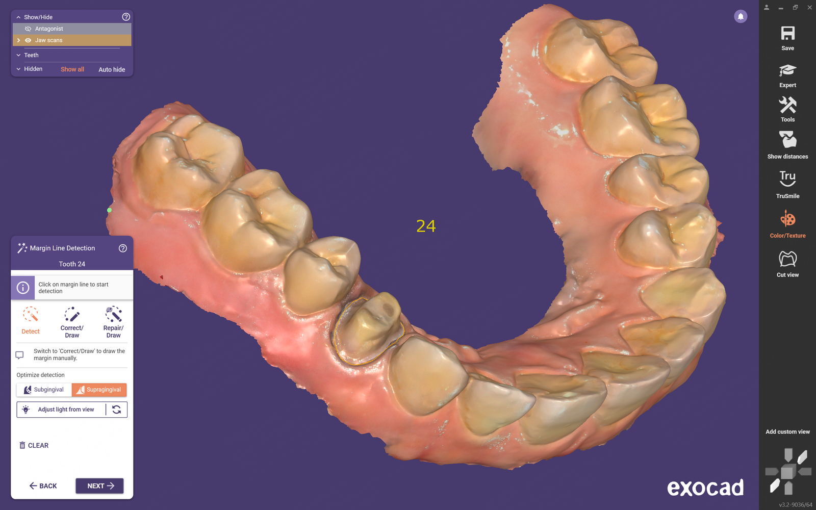 The clinical toolkit assists dentists to evaluate and pre-design the scanned data in their own clinic.